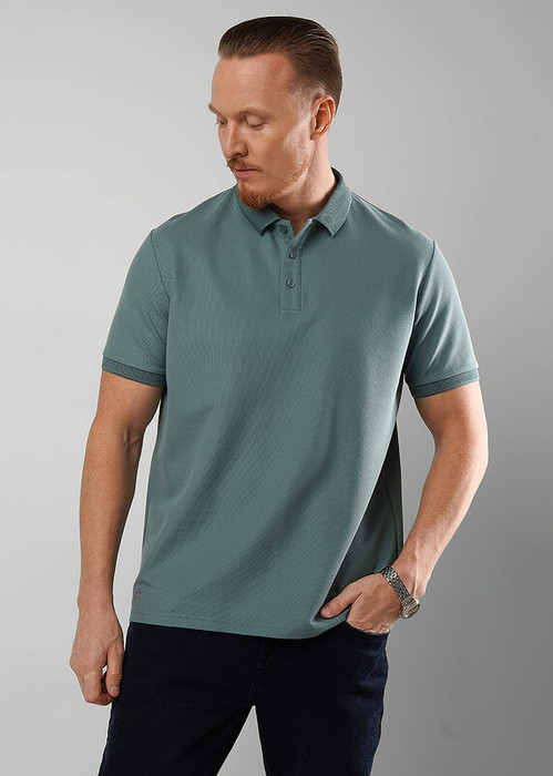 Мужская базовая футболка-поло. Модель дополнена вязанными отделками, фирменной фурнитурой и вышивкой. Изделие отлично сочетается с любыми брюками или джинсами.