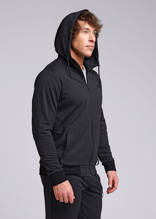 Куртка мужская с застежкой-молнией по переду на капюшоне из плотного пике. Рукава втачные с манжетой, по низу пояс. На капюшоне люверсы со шнуром и наконечниками. Для функциональности и удобства спереди карманы на молнии с тесьмой.