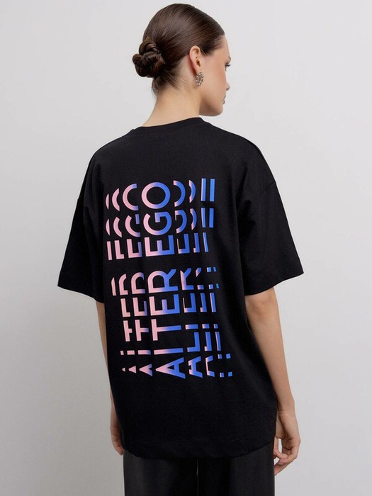Удлиненная oversize-футболка из хлопка с рисунком «Alter ego» станет основой для множества расслабленных базовых образов, а стильный рисунок добавит вашему повседневному гардеробу больше индивидуальности. Обратите внимание: модель универсального размера, поэтому подойдет и женщинам, и мужчинам.