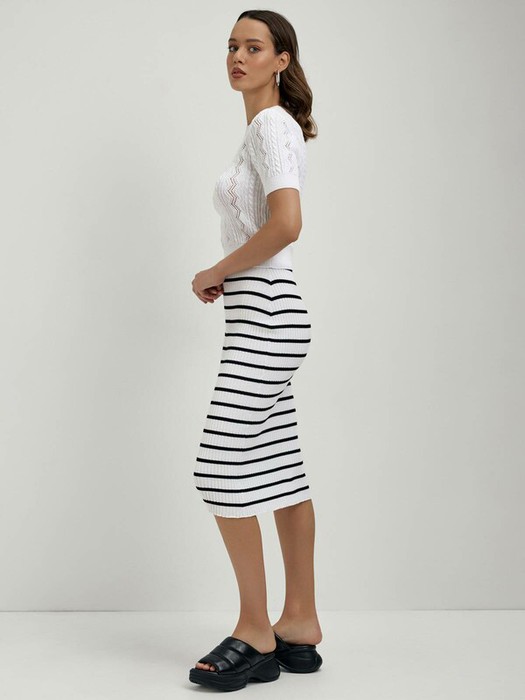 Юбка-midi в полоску в эластичном переплетении ластик LDK 2336Фактурное переплетение ластик со сменой полос, прилегающий силуэт и безупречная посадка по фигуре делают эту юбку особенной частью гардероба, которую вам захочется надевать как можно чаще. Модель изготовлена из тонкой шелковистой пряжи на основе вискозы. PREMIUM VISCOSE: вискоза премиального качества легкая, гладкая, с приятным матовым блеском. Вязаный трикотаж с вискозой приятно холодит, а небольшое количество полиэстра в составе помогает ей сохранять форму. Пряжа устойчива к разрывам, образованию катышек, усадке. · высокая посадка на талии· пояс с эластичной тесьмой· длина midi· прилегающий силуэт· гладкая и приятная к телу пряжа с вискозой· фактурное переплетение ластик со сменой полос· сохранение формы и цвета при соблюдении рекомендаций по уходу· лаконично, женственно и элегантно· создайте total-look, используя джемпер LDK 2335.
