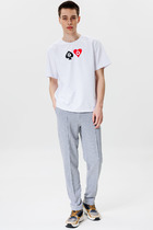Брюки на манжетах с отрезным поясом из кашкорсе, двумя карманами в боковых швах.