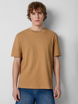 Фуфайка с коротким рукавом среднего объема, с оригинальным принтом, круглым вырезом горловины, которая оформлена обтачкой из рибаны.