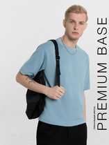 Фуфайка с коротким рукавом среднего объема, круглым вырезом горловины, которая оформлена обтачкой из рибаны.