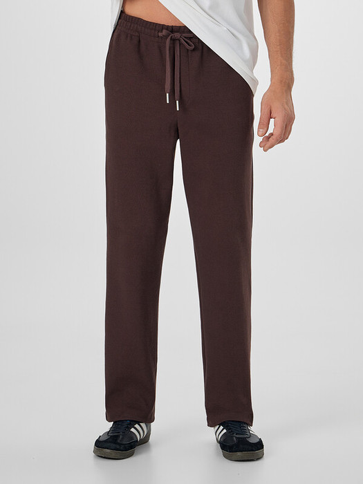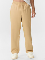 Брюки зауженные книзу, посадка средняя. Пояс цельнокроёный с эластичной тесьмой внутри. С внешней стороны пробиты петли и втянут шнур с застроченными концами. На левой детали переда имитация гульфика.  По переду карманы с отрезными бочками. На правой детали спинки имитация кармана "в рамку с листочкой".  Нижние срезы брюк  обработаны швом вподгибку.