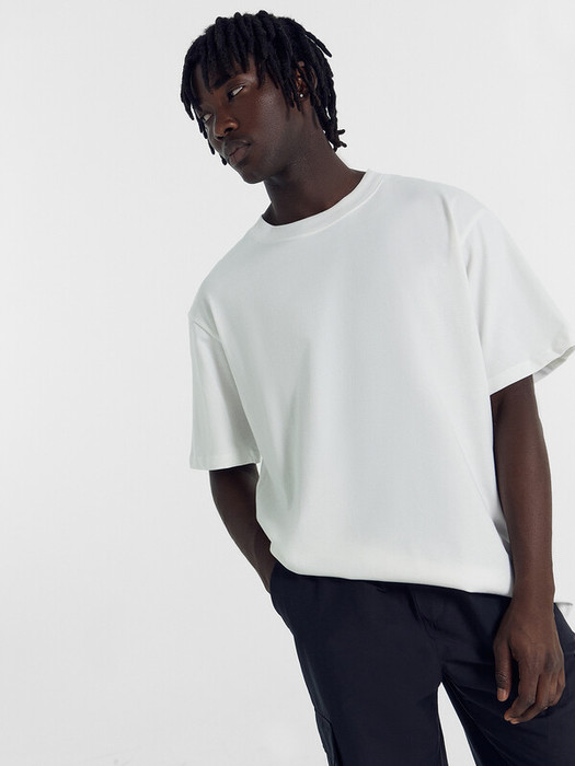 Нижние срезы футболки и рукавов обработаны швом в подгибку на