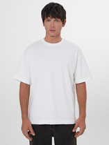 Футболка прямая свободная. Горловина округлой формы обработана обтачкой из рибаны. Шов втачивания обтачки по спинке закрыт бейкой из основного полотна. Линия плеча слегка спущена. Рукава втачные, корткие. Нижние срезы футболки и рукавов обработаны швом вподгибку на 2х шовной плоскошовной машине.