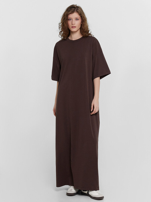 Платье свободного силуэта, длиной макси. Горловина круглая, обработана обтачкой из основного полотна. Шов втачивания обтачки по спинке закрыт бейкой из основного полотна. Рукава втачные короткие, пройма углублена. Нижние срезы платья и рукавов обработаны швом вподгибку.