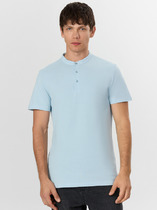 Джемпер мужской «поло» прилегающего силуэта из трикотажного полотна пике. Горловина круглой формы со стояче-отложным воротником из довяза. Центральная застежка планка на пуговицы. Шов горловины спинки обработан хб тесьмой. Рукав втачной, короткий. В боковых швах обработаны разрезы.