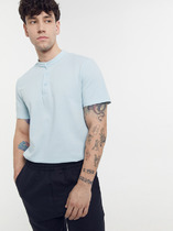 Перед с застежкой "поло". Верхняя планка цельнокроеная. Застежка на 2 петли и пуговицы.