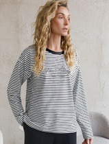 Модель выполнена из цельнокроеных переда и спинки, что дарит ощущение плавности линий и отсутствия лишних швов. Круглая горловина аккуратно обработана бейкой из основного материала. Низ изделия и рукава дополнены поясом и манжетами с широкой эластичной тесьмой для комфортной и надежной фиксации.