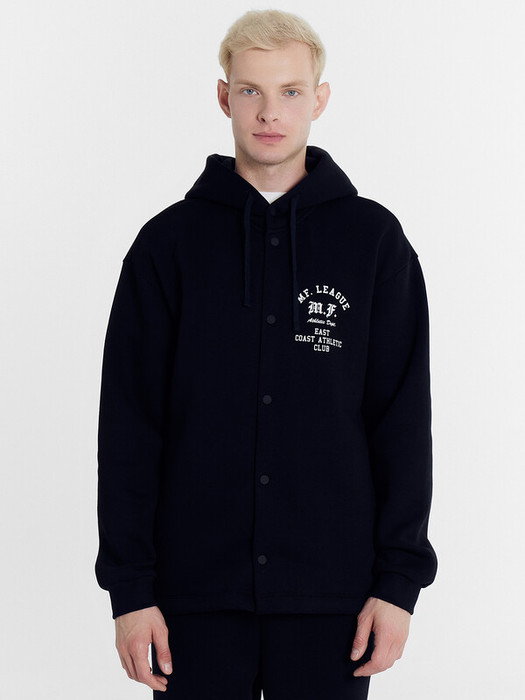 По переду обработана центральная застежка на кнопки, верхняя кнопка распологается на капюшоне.