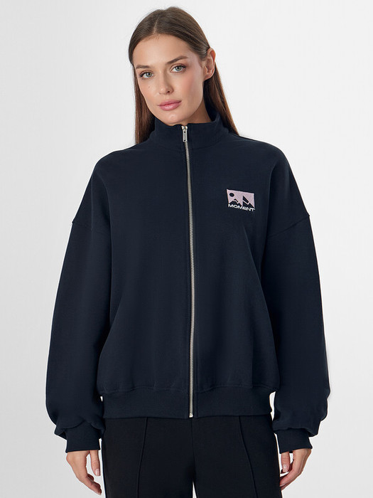 Женская толстовка на молнии с надписью «Момент» — идеальный спутник для ваших самых ярких дней. Свободный оверсайз крой и воротник-стойка, облегающий шею, надежно защищает от ветра и прохлады, даря ощущение комфорта. Длинные рукава с эластичными манжетами и поясом из рибаны мягко облегают фигуру, подчеркивая стильный силуэт.