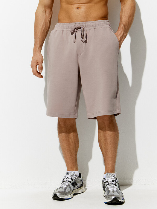 Мужские свободные шорты средней длины с боковыми карманами и поясом на резинке с кулиской.