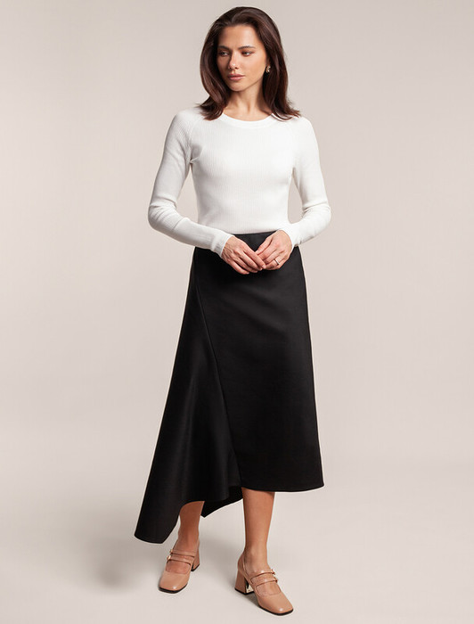22.03 Vilatte Асимметричная юбка из плотной эластичной ткани из хлопка с нейлон