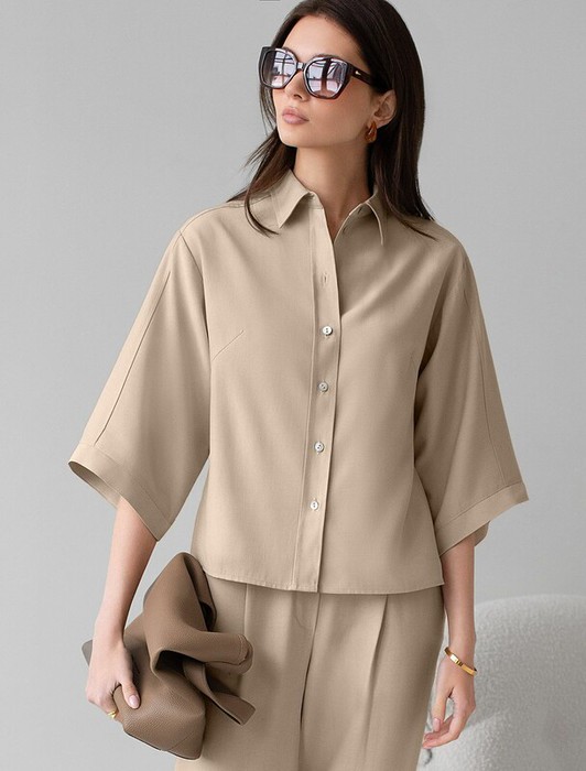 Совместные покупки Пермь Женская одежда Блузки, рубашки — 22.03 Vilatte Блузка с широкими рукавами 3/4 из плотного лиоцелла D29.354 светл
