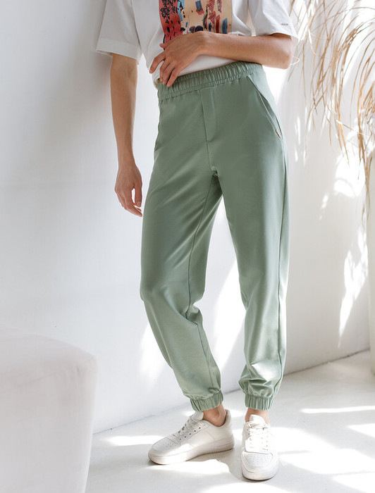 Совместные покупки Пермь Женская одежда Спортивные штаны — 27.03 Vilatte Брюки из тонкого премиального футера с эластаном D44.137 св.оливк