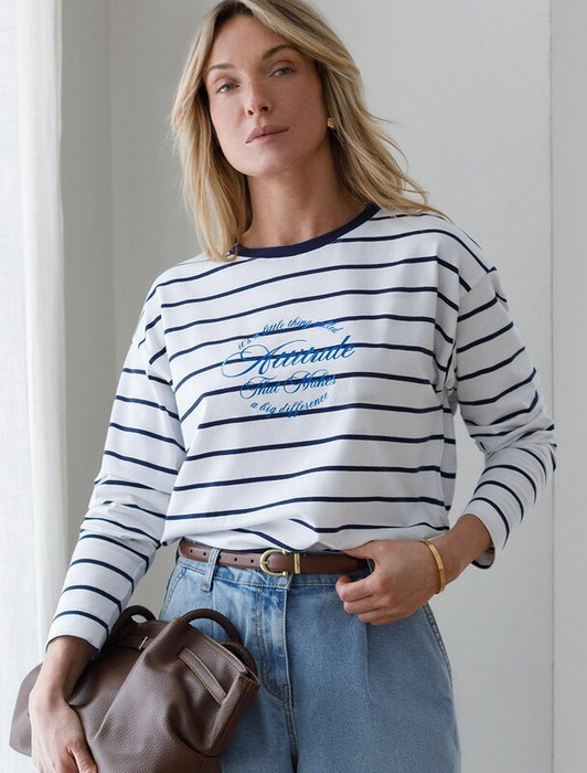 Совместные покупки Пермь Женская одежда Джемперы, свитеры, водолазки — 22.03 Vilatte Лонгслив с принтом из премиального хлопка с эластаном D49.148 бел