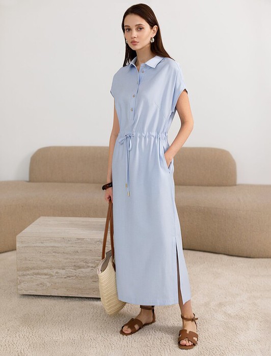 27.03 Vilatte Платье-рубашка с кулиской на талии из плотного лиоцелла D22.293 г