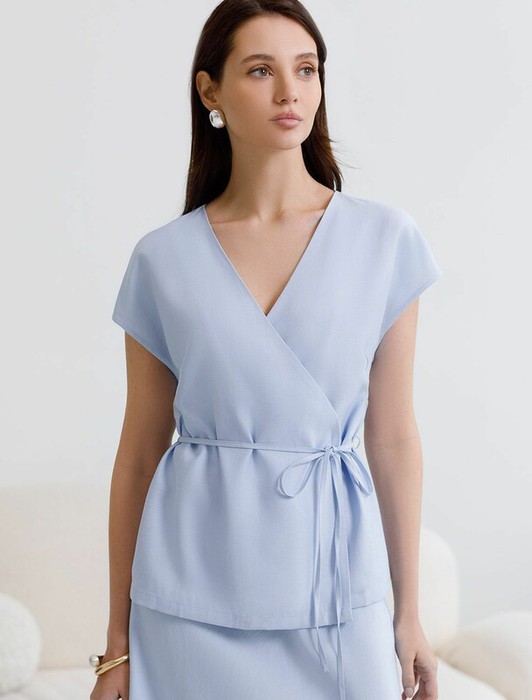 22.03 Vilatte Жилет на запАх с поясом из плотного лиоцелла D27.004 голубой