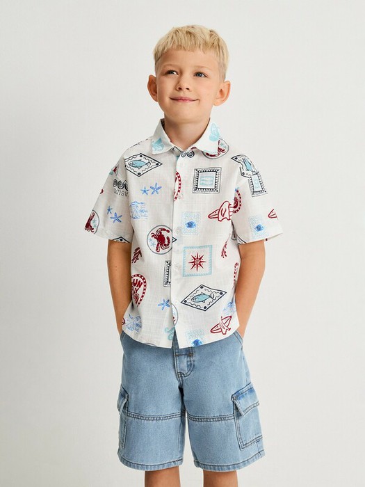 22.04 Acoola Сорочка верхняя детская для мальчиков Delio 20120290079 синий принт