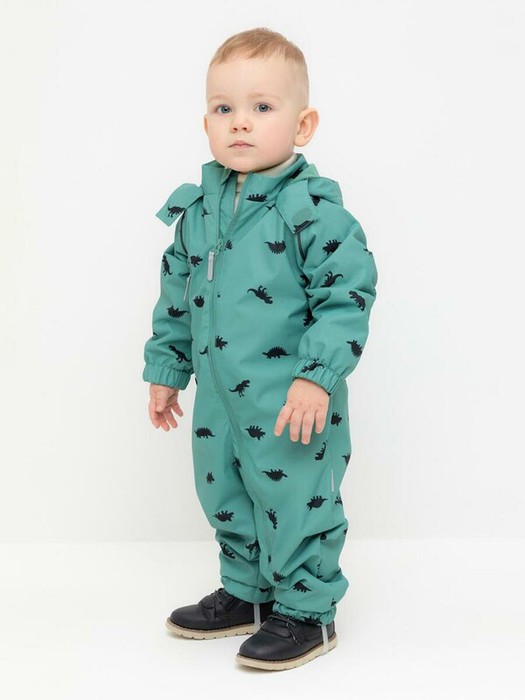 Ветровочный комбинезон ясельный из мембранной ткани с дополнительной тефлоновой обработкой. Данный вид обработки предохраняет изделие от загрязнения и лучше отводит влагу. Подклад из 100% хлопка. У изделия удлиненная молния для легкого одевания с защитой подбородка. Утяжка на капюшоне с потайными стопперами. По низу рукавов и брючин, а также на спинке изделия эластичная резинка для лучшего прилегания. Для фиксации комбинезона используются съемные силиконовые штрипки. В размере 74-80 функциональные отвороты на рукавах и брючинах. Во всех изделиях верхнего ассортимента для безопасности ребенка предусмотрены светоотражающие элементы.