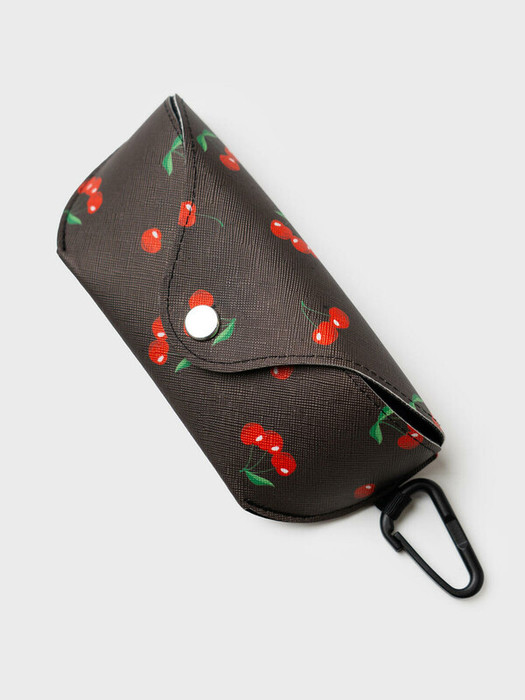 Чехол для солнцезащитных очков. Материал верха принтованная искуственная кожа. Трендовый принт вишенки подходит под коллекцию. Чехол закрывается на кнопку. Внутри мягкая подкладка из микрофибры. Чехол имеет карабин,  с помощью которого чехол можно прикрепить на сумку или рюкзак. В подарок идет салфетка из микрофибры для протирки очков.  Параметры чехла: 16*7*4,5 см