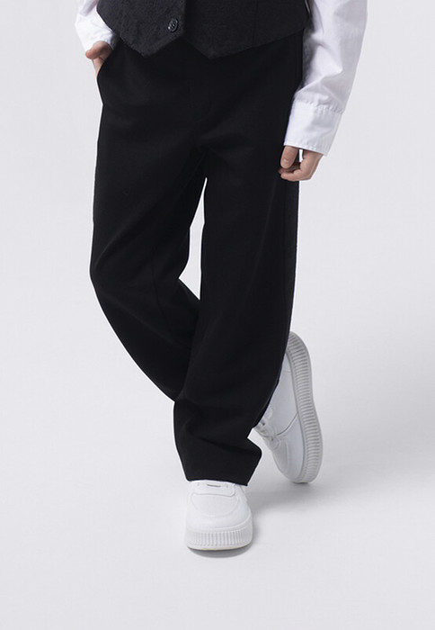 Элегантные брюки из мягкого трикотажа с жаккардовыми лампасами — стильное решение для особых случаев и школьных мероприятий. Лаконичный крой с декоративными деталями придаёт образу торжественность, а утяжка на поясе обеспечивает удобную посадку.