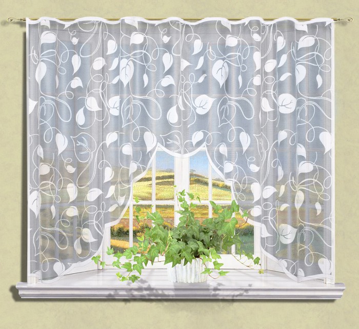 Штора - арка для кухни из жакарда. Размеры: 300 см ширина, 175 см высота. Нежный, элегантный рисунок. Пошита на универсальной шторной ленте. Состав 100% полиэстер. Вес 0,330 кг. Размер в упаковке (25*35*3) см. Производство - фабрика HAFT (Польша). Светонепроницаемость - 12 %