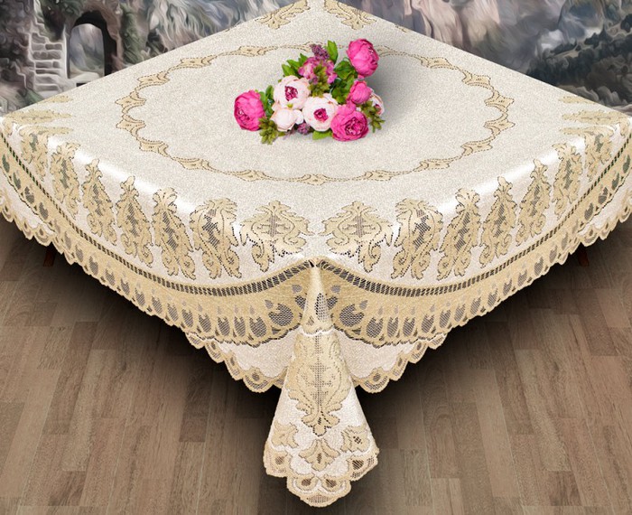 Скатерть из жаккарда (жаккард - рельефная ткань, образующаяся из сложного переплетения нитей, выполненного на ткацком станке). Легко стирается (даже трудновыводимые пятна исчезают уже при замачивании), быстро сохнет, требует лишь легкой утюжки. После стирки не теряет формы и цвета. Состав 100% полиэстер. Размер указан от края до края изделия. Вес 1 кг. Размер в упаковке: (25*35*8) см.