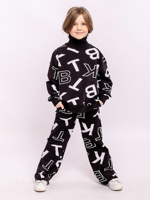 Брюки детские для детей и подростков. Модный широкий фасон, черный цвет, принт с буквами. Материал - футер. Пояс на резинке.