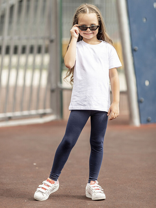 Леггинсы для девочки темно-синие на резинке из супрема. Удобные леггинсы для спорта и активного отдыха. На детей от 3 лет и подростков.