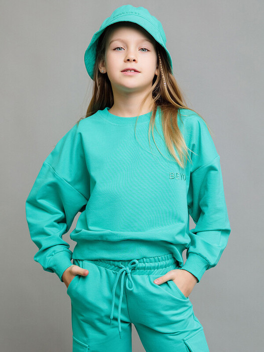 Свитшот укороченный детский в мятном цвете из футера. Стильная модель для мальчика и девочки с вышитой на груди надписью в тон основному оттенку. Манжеты рукавов и низ эластичные. Крой оверсайз, спущенная линия рукава.Характеристики:Ткань: футер 2х нитка 90% хлопок 10% полиэстерПроизводитель: batik