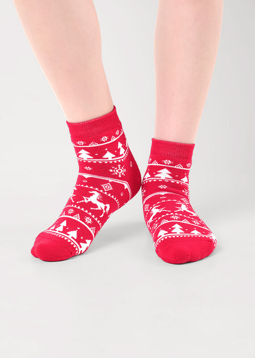 теплые плюшевые новогодние детские носки со скандинавским орнаментом