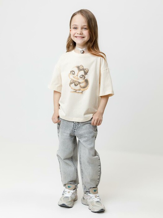 Футболка для девочки из гладкого трикотажа, произведённого из высококачественного натурального хлопка. Застёгивается на спине на кнопки в размерах 92 и 98. Оригинальный принт выполнен из стойких текстильных гипоаллергенных красителей. Изделие сохраняет цвет и форму после многократных стирок. Все трикотажные полотна производятся в соответствии с нормами швейцарского сертификата ЭкоТекс.