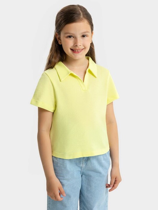 Джемпер прямого силуэта. Горловина V-образной формы c воротником и втачными планками из основного полотна. Рукав втачной короткий. Низ изделия и рукавов обработан швом в подгибку.