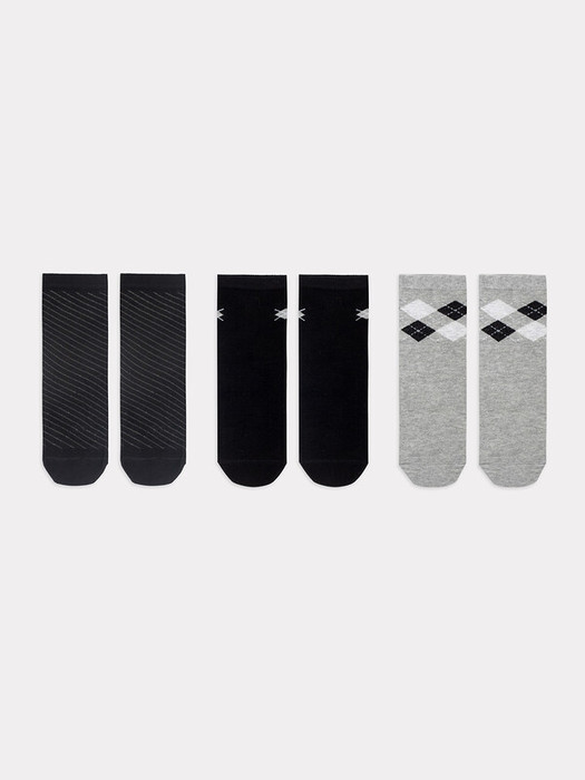 Мультипак из трех пар гладких  детских носков с рисунком в виде ромбов и диагональной полоски.