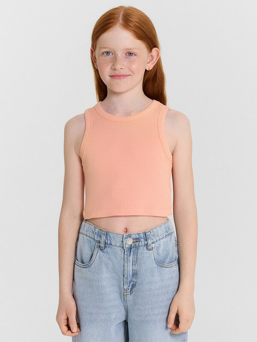 Топ для девочек прилегающего силуэта. Горловина круглая. Проймы и горловина окантованы бейкой из основного полотна. Низ изделия обработан швом в подгибку.