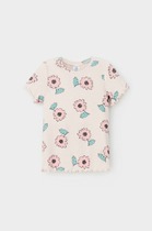 Топ для девочек из рибаны, облегающего силуэта, длиной ниже уровня талии. Перед и спинка цельнокроеные. Горловина круглая. Горловина и проймы окантованы широкой бейкой из основного полотна. Низ изделия обработан швом в подгибку.
