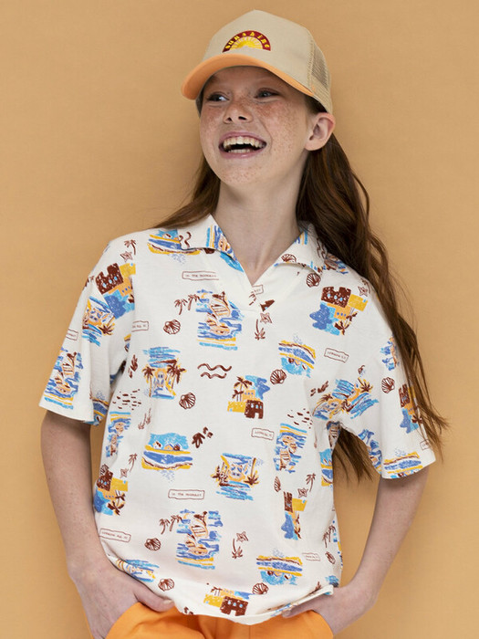 Футболка- поло для девочек - актуальный тренд этого сезона. Выполнена из хлопкового трикотажа не вызывает аллергии и отлично пропускает воздух. Модель свободного покроя со спущенным плечом, воротником - апаш с расходящейся планкой хорошо сочетается с шортами, джинсами. Подойдет для отдыха, путешествий, пляжа, прогулок. Футболка с акцентным курортным принтом создаст настроение отпуска на море.