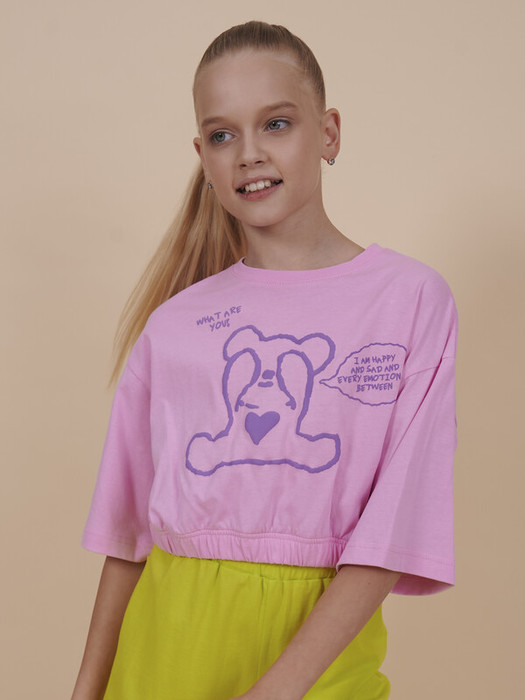 Укороченная футболка для девочки с коротким рукавом. Кроп топ свободного прямого кроя и актуальный оверсайз силуэт делают детский джемпер невероятно модным и удобным. По низу изделия резинка. Яркая и стильная вещь с принтом, излучающим любовь, охладит в жаркую погоду пропуская воздух. Можно надевать под ветровку как весенний вариант, под тонкую жилетку как летний или в качестве самостоятельного элемента гардероба девочек для создания многослойного образа. Объемная короткая кофта самая уютная вещь на весну и на лето. Базовая вещь в гардеробе стильного малыша. Благодаря уникальному крою, комфортно подойдет для любой фигуры девушки, для высоких и невысоких детей. Мягкая трикотажная блузка подойдет на улицу для прогулок, отдыха на природе, путешествий, посещение кружков и секций, на танцы и хип-хопа, занятия спортом, как домашняя одежда для дома и повседневный вариант. Станет самой любимым и востребованным в гардеробе ребенка.  Размерная линейка: 3 (98); 4 (104); 5 (110); 6 (116); 7 (122); 8 (128); 9 (134); 10 (140); 11 (146). Выбирайте нужный размер по таблице размеров на фото. Цвет товара на экране вашего устройства может отличаться от цвета изделия вживую.