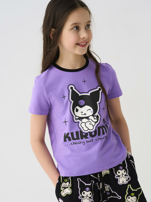 Футболка для девочки подростка. Модель прямого кроя, выполнена из эластичного хлопкового трикотажа джерси. На груди расположен крупный принт с любимым персонажем Куроми.