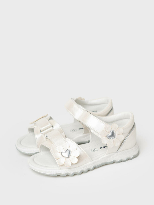 Белые сандалии для девочки с закрытой пяткой и открытым носом. Нарядные босоножки выполнены из искусственной кожи по свойствам приближенной к натуральной коже. Стелька из натуральной кожи с анатомическим элементом, поддерживающим свод стопы в правильном положении. Подкладка выполнена из 100% свиной натуральной кожи. Удобные возвратные ремни с липучками позволяют регулировать объем на любой подъем. Гибкая подошва из терморезины обладает гибкостью и повышенной прочностью.
