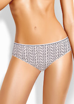 Трусы бразилиана женские из эластичного хлопкового полотна. Обработка краев по талии резинка с принтом, по ноге - подгибка.