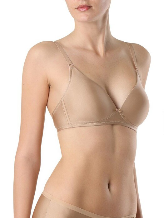Бюстгальтер серии DAY BY DAY выполнен из тонкого шелковистого полотна с блеском. Универсальная модель, лаконичный дизайн, минимальная декоративная отделка делают это белье комфортным и абсолютно незаметным под облегающей одеждой. ·гладкая формованная чашка, без каркасов·треугольная форма чашки·бретели, отстегивающиеся на спинке, чтобы застегивать крест-накрест (идеально для вещей с открытыми плечами)·незаметен под облегающей одеждой.