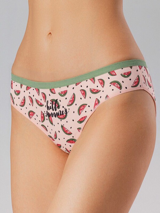 - Дизайн: Принт с арбузами и зелёная резинка на поясе.