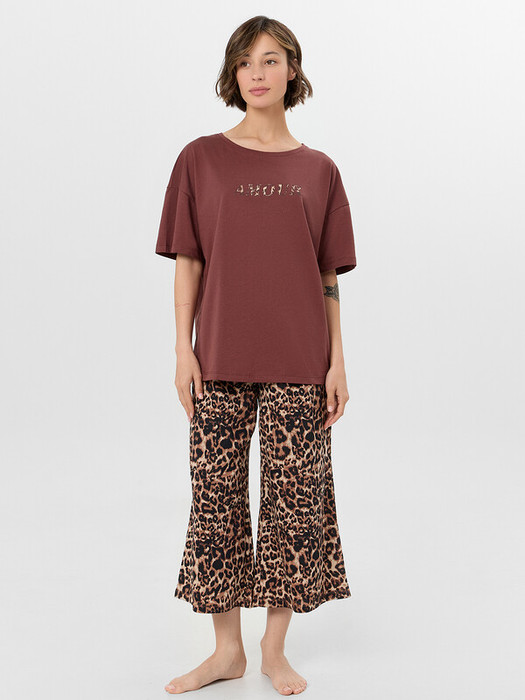 Женская пижама Mark Formelle станет идеальным дополнением вашего домашнего гардероба. Свободная футболка с круглой горловиной и короткими рукавами со спущенной линией плеча обеспечивает максимальный комфорт и свободу движений. Бриджи свободного кроя с эластичным поясом идеально сидят на талии, не стесняя движений и обеспечивая удобство на протяжении всего дня. Изделие выполнено из нежной кулирки - мягкого и приятного к телу материала, который отличается дышащими свойствами и гипоаллергенностью. Подарите себе или своим близким эту чудесную пижаму и наслаждайтесь уютными домашними вечерами.
