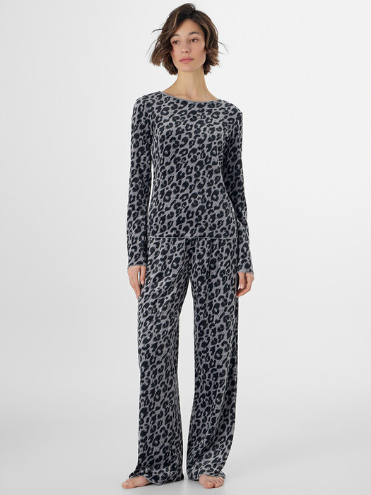 Домашняя пижама из велюра подарит вам ощущение уюта и мягкости. Этот уютный ансамбль состоит из джемпера полуприлегающего силуэта и свободных брюк, созданных для полного расслабления.