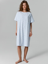 Хлопковая женская сорочка свободного силуэта. Горловина круглой формы. Рукава короткие, линия плеча слегка спущена. Уютный вариант для сна!