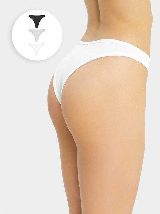 Стильный и лаконичные трусики бразилиана из нежного и гипоаллергенного хлопкового полотна. Линия талии высокая. Верхний и нижние срезы обработаны окантовкой из основного полотна. Особый шарм белью придает фактура в рубчик.