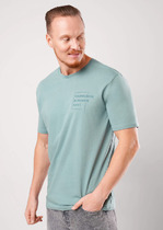 Футболка мужская с круглым вырезом горловины и декоративной планкой с пуговицами, с коротким втачным рукавом. Модель дополнена имиджевой фурнитурой, что делает образ стильным и завершенным.